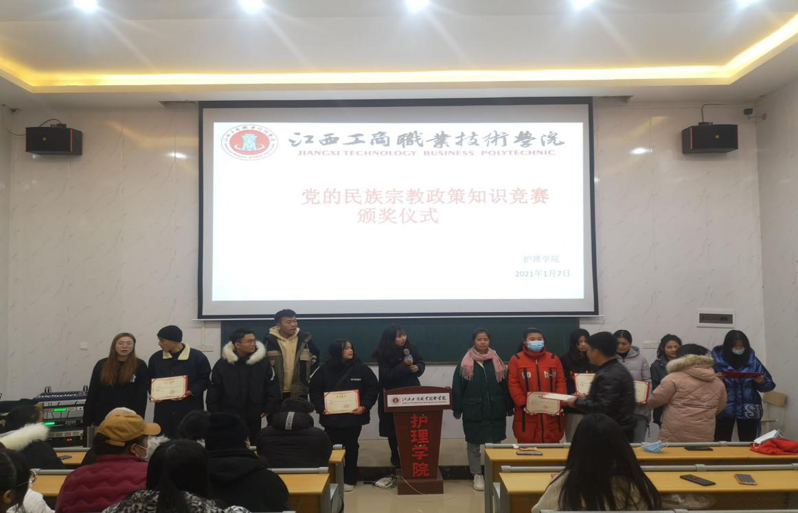 2021年1月7日,黨的民族宗教政策知識(shí)競(jìng)賽圓滿結(jié)束。為表彰優(yōu)秀獲獎(jiǎng)學(xué)生,護(hù)理學(xué)院在報(bào)告廳舉行了頒獎(jiǎng)典禮。