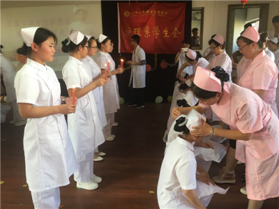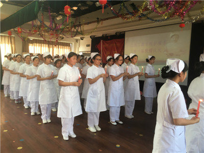 2015級護理學生李冰艷在發(fā)言中代表全體護士生表示,將認真學習,虛心求教,努力進取,掌握扎實的醫(yī)學基礎(chǔ)知識,嫻熟的護理技術(shù)和與患者溝通交流的藝術(shù),能夠把所學的理論和技術(shù)運用到護理工作中去,像南丁格爾那樣,以一顆同情的心和一雙勤奮的手,以真心,愛心和責任心,減輕或消除病人的痛苦,為護理事業(yè)做出貢獻。