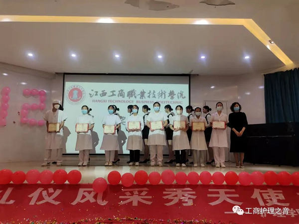 首先江西工商職業技術學院學校領導致辭,他對護理學院全體師生所做的工作與努力給予了充分肯定,號召全體學生刻苦鉆研,努力學習,為我國的醫護事業而奮斗,同時祝同學們節日快樂。隨后校黨委馬江華副書記對優秀代教老師、優秀實習生進行頒獎。其次由專業老師為36名學生代表授帽,并莊重宣誓。
