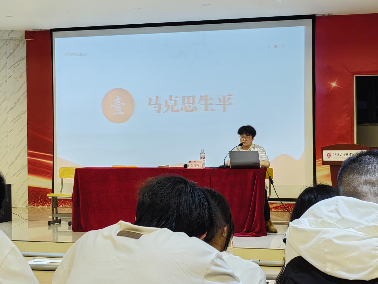 儀式結(jié)束后,吳閣坤以《感悟馬克思主義科學(xué)精神,堅定共產(chǎn)主義遠(yuǎn)大理想,爭做有樣青年骨干》為題進(jìn)行大骨班第一次理論授課,以深入淺出的方式講解了馬克思主義的基本原理和方法論,引導(dǎo)學(xué)員們樹立正確的世界觀、人生觀和價值觀。