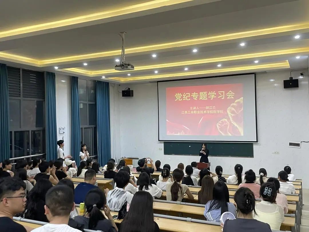 2024年6月13日晚19:30時,我院于醫學院西103教室開展了黨紀專題學習會,本次學習會的主要目的是對我院班級團支書,團學聯及入黨積極分子進行黨紀黨風教育,加強團隊素質教育,規范院內風紀。參會人員有醫學院黨支部組織員胡江蘭,醫學院團總支副書記吳閣坤,輔導員代表及學生代表。