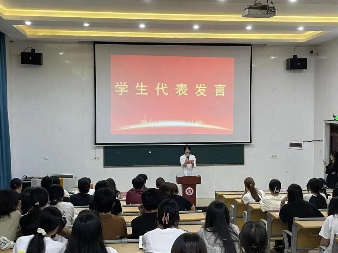 隨后,學生代表上臺進行發言,表示結合學生干部的實際工作,強調了遵守學生干部紀律的重要性,提出了學生干部在日常工作中應如何發揮模范帶頭作用,自覺遵守紀律,樹立良好的形象。