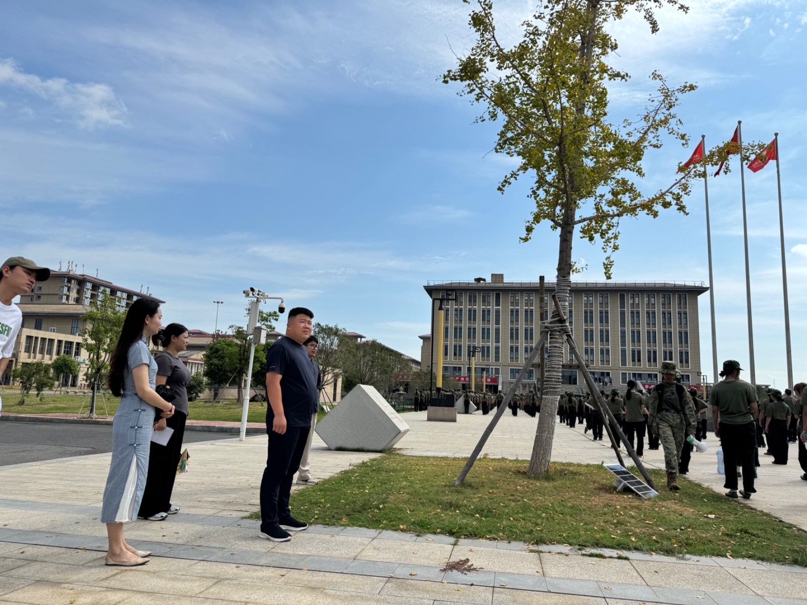 在訓練場上,挺拔的軍姿成為一道亮麗的風景線。陽光映照下,少年們目光如炬、汗水浸透衣衫,仍保持著最標準的姿勢。付偉副書記細心察看訓練情況,與帶訓教官深入交流,詳細了解訓練進度和同學們的精神狀態。