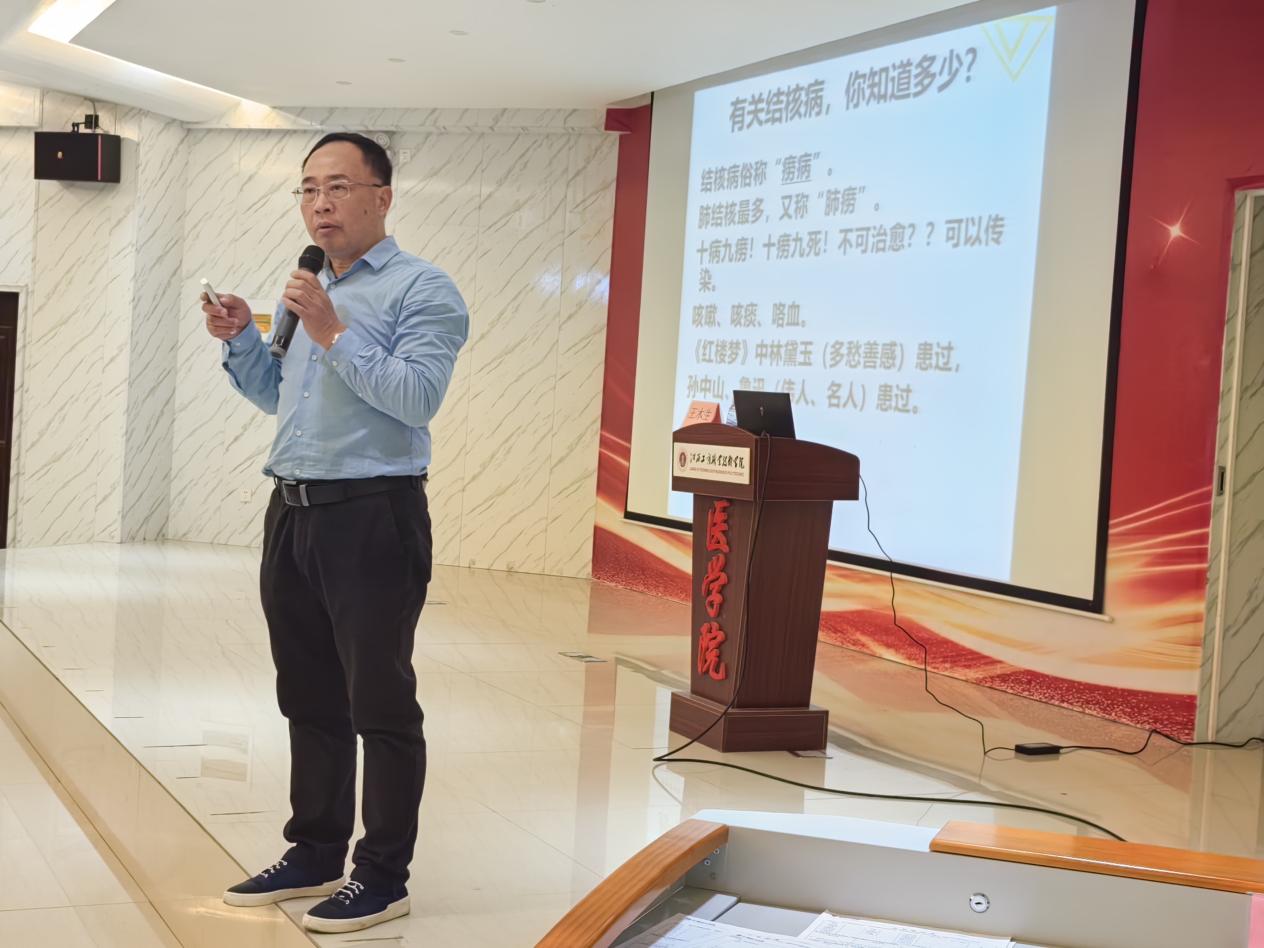 2024年3月24日是第29個世界防治結核病日,學校校長助理、醫學院院長王木生教授走上講臺,在醫學院學術報告廳開展防治結核病科普講座。全校300余名師生代表聆聽了此次講座。