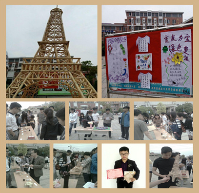 保護環境是每個公民的責任,構建和諧校園更是每個在校學生的義務。為了增加同學們的環保意識,建立“環保校園”,增強同學們的動手能力和審美觀念,2015年4月17日中午12點在行政樓廣場,我系學生會成功舉辦了一個“變廢為寶DIY”活動。此次活動既發揮了同學們的想象力和創造力,又豐富了同學們的課余生活。
