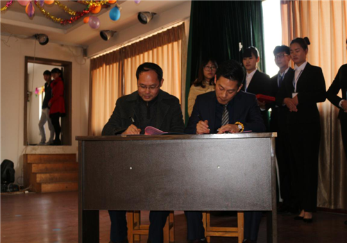 (學(xué)院曠強(qiáng)軍副院長與天瑞余興苑總經(jīng)理簽約)