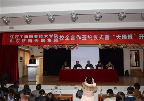 為了進(jìn)一步貫徹落實(shí)我院“321辦學(xué)模式”,推動(dòng)我院教育教學(xué)改革,提升學(xué)生就業(yè)平臺(tái),經(jīng)學(xué)院研究,決定與山東濟(jì)南天瑞集團(tuán)進(jìn)行校企合作,并成立江西工商職業(yè)技術(shù)學(xué)院“天瑞”訂單班,12月18日下午,在我院行政樓四樓報(bào)告廳舉行江西工商職業(yè)技術(shù)學(xué)院與山東濟(jì)南天瑞集團(tuán)校企合作簽約儀式暨“天瑞班”開班典禮。