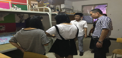 為了進一步讓新生快速適應新環境,加強學生宿舍安全管理工作。8月27日19:00,我系書記李盛艷與2017級班主任對我系南七棟的新生寢室進行了逐一走訪,與新生們做了