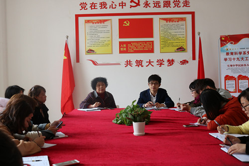 2018年 3月5日是2018年新學期開學第一天,當天下午,教育科學系在系部當黨團活動室召開新學期工作布置會,對新學期的工作進行部署安排。系部黨支部書記李盛艷主持會議并講話,副主任劉曉瑜作工作部署,全體教職工參加會議。