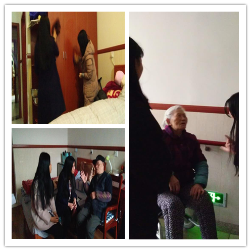 上午9時,同學們不顧天降大雨,依然繼續準備前往養老院進行義工活動。到達養老院后,同學們開展了一系列義工活動。上午,同學們幫助老人打掃衛生,整理內務,進行了寢室衛生清理活動,通過這些活動,使得同學們與老人們之間的關系更加融洽和諧,也讓同學們明白了“老吾老以及人之老”的真正含義!與此同時,同學們還與老人們進行聊天,傾聽老人講故事,真正走進老人們的生活,了解老人們的起居住行,真正體會到本次活動的重要意義!