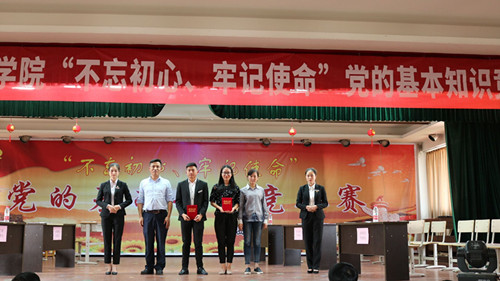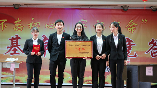 喜報:熱烈祝賀我系學生代表隊在今天下午在學院舉辦的“不忘初心,牢記使命”黨的基本知識競答賽中榮獲一等獎,讓我們對這些為我系帶來榮譽的老師和同學表示衷心的感謝和誠摯的祝賀!