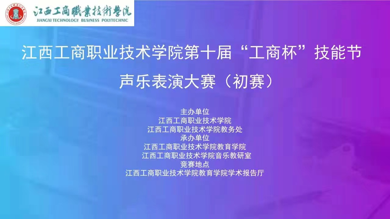 4月5日,江西工商職業技術學院第十屆“工商杯”技能節聲樂表演大賽(初賽)在教育學院學術報告廳順利舉行。參加此次大賽的有教育學院教師及30多位參賽選手,其中教育學院黨支部書記劉凌云,教師邱萬鵬、吳文華、陳星羽、鄔冕擔任本次大賽評委。
