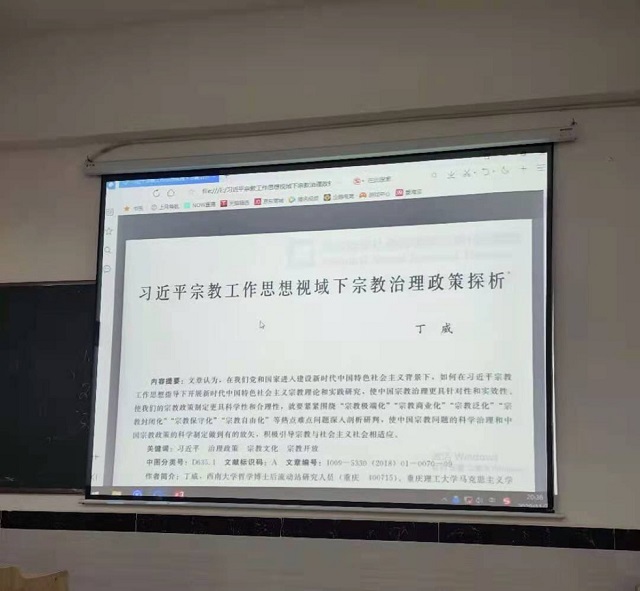 課堂上,同學們仔細閱讀了《習近平宗教工作思想視域下宗教治理政策探析》,認真回答老師問題,積極參與互動,收獲滿滿。