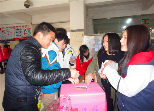 3月6日——7日學生會外聯部在教學樓下舉行以“靜女其姝 馥郁綻放”為主題的女生節(jié)活動。活動過程中女生將自己的小心愿寫在紙條上投入心愿箱中,再由男生抽取紙條為女生實現愿望,同時開展“關心女生成長 關注女生健康”的倡議簽名活動。活動現場的氣氛非常熱烈,充滿歡聲笑語。