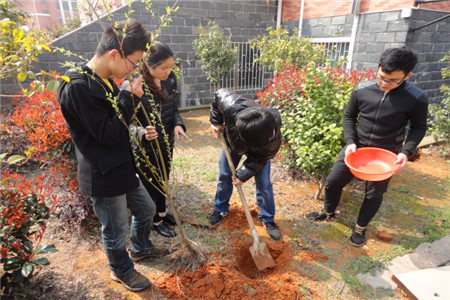 暖風習習,春日和煦,我們迎來了一年一度的植樹節。為響應國家植樹綠化的號召,使學生充分了解有關樹木的知識,了解植樹節的來歷及其遠大意義;進一步了解樹木與人類的密切關系,提高學生保護樹木花草的責任感;增強愛護樹木的能力,我院團委和學生會干部一起開展了植樹節的活動,大家帶來水桶、鐵锨等勞動工具,以小組為單位分別為校園內的綠化花草澆水、松土,場面熱火朝天。澆過水的花草仿佛更加鮮綠,為學校又增添了一道春天的風景。