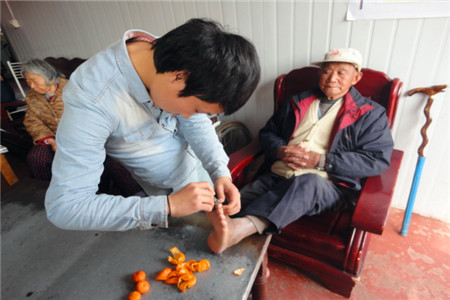敬老愛幼是中華民族的傳統(tǒng)美德“老吾老以及人之老,幼吾幼以及人之幼”因此的我院團(tuán)委老師和學(xué)生一起開展了愛心小分隊(duì)去敬老院的活動。此次活動為了呼吁更多的青年大學(xué)生去關(guān)注老年人,敬老愛老,讓他們時時刻刻能夠感受到社會大家庭的溫暖!也是為增加同學(xué)們參與社會實(shí)踐經(jīng)驗(yàn)與社會服務(wù)意識,增強(qiáng)廣大同學(xué)的社會責(zé)任感。當(dāng)我們走進(jìn)敬老院見到了老人們,大家就好像又見到了自己的爺爺奶奶,都主動和老人們談心、拉家常,為老人修剪指甲,詢問老人的身體狀況。老人們一聚齊,我們的文藝演出就開始了,有通俗易唱的歌曲,有老人們最喜歡的舞蹈表演,當(dāng)演到到高潮處,老人們也拍起手給我們喝彩,現(xiàn)場氣氛熱鬧非凡,歡笑聲、歌聲、交談聲交匯在整個敬老院里。老人們的臉上都布滿了微笑。