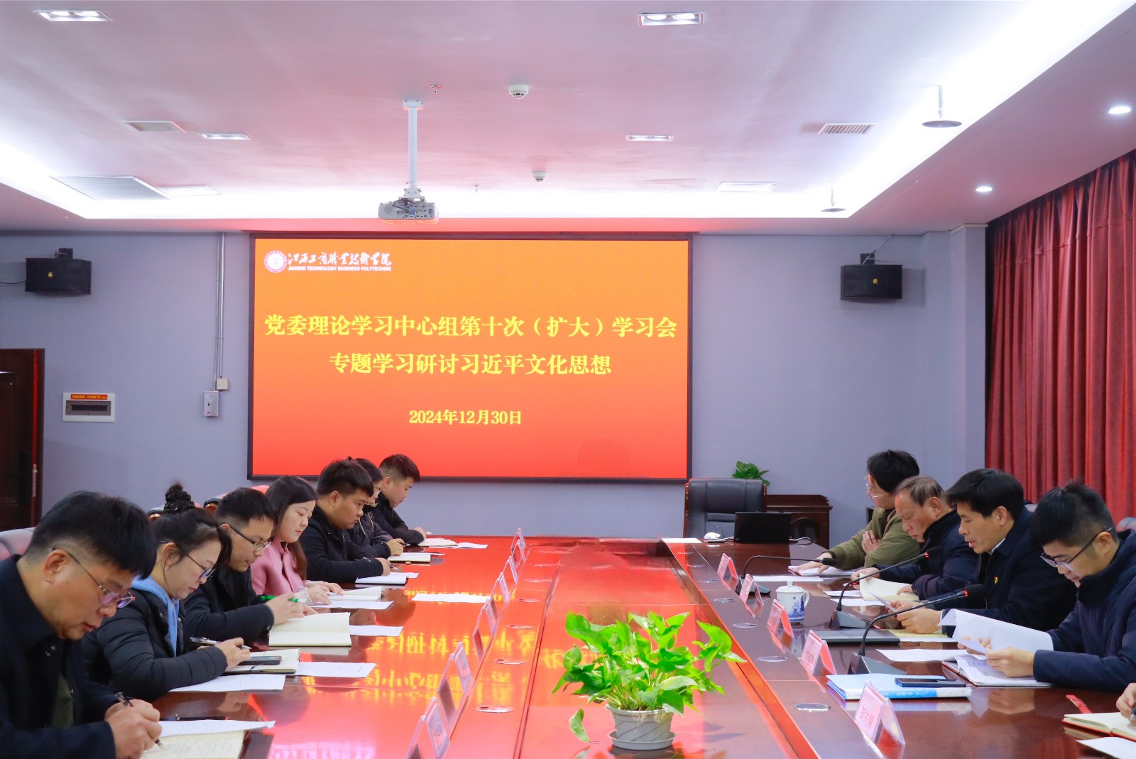 12月30日,學校黨委書記、督導專員應露晨主持召開2024年黨委理論學習中心組(擴大)第10次集體學習會,專題學習習近平文化思想。學校黨委理論學習中心組成員,黨群職能部門負責人,各黨支部書記參加學習