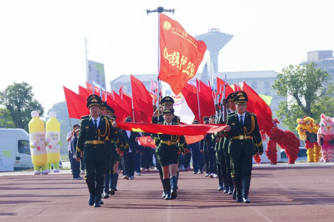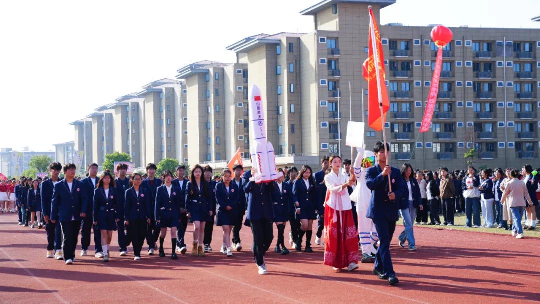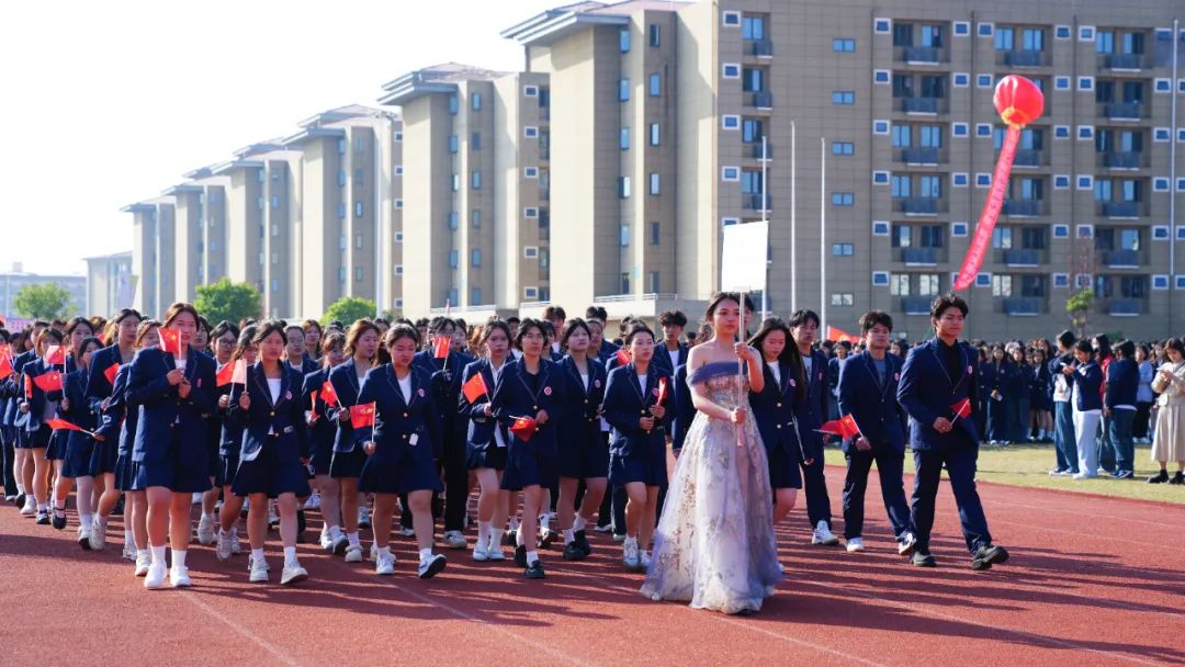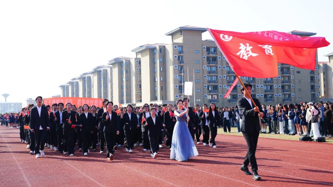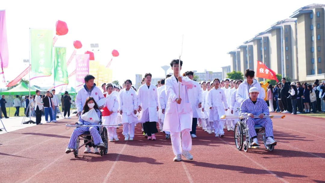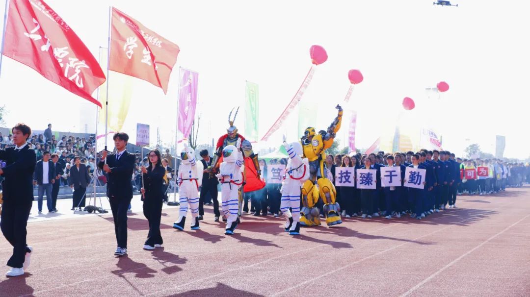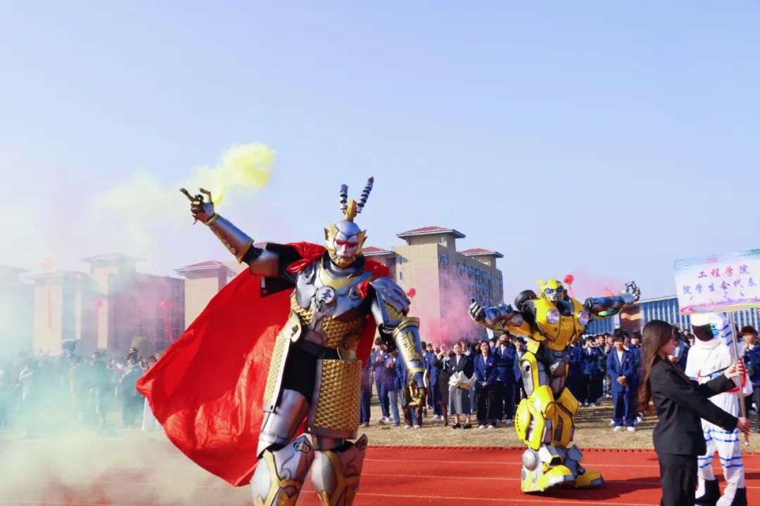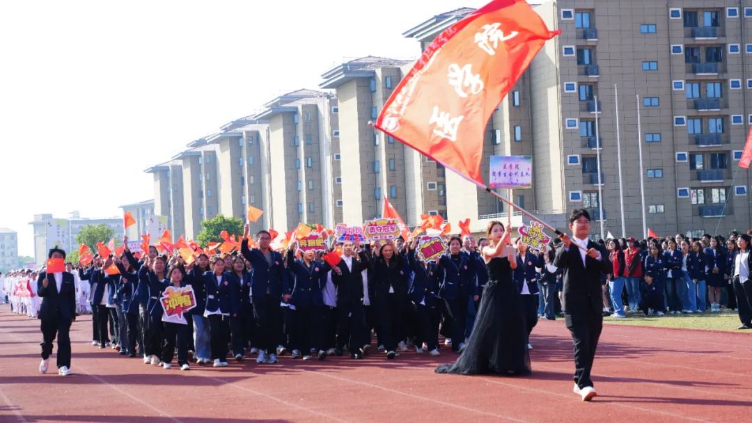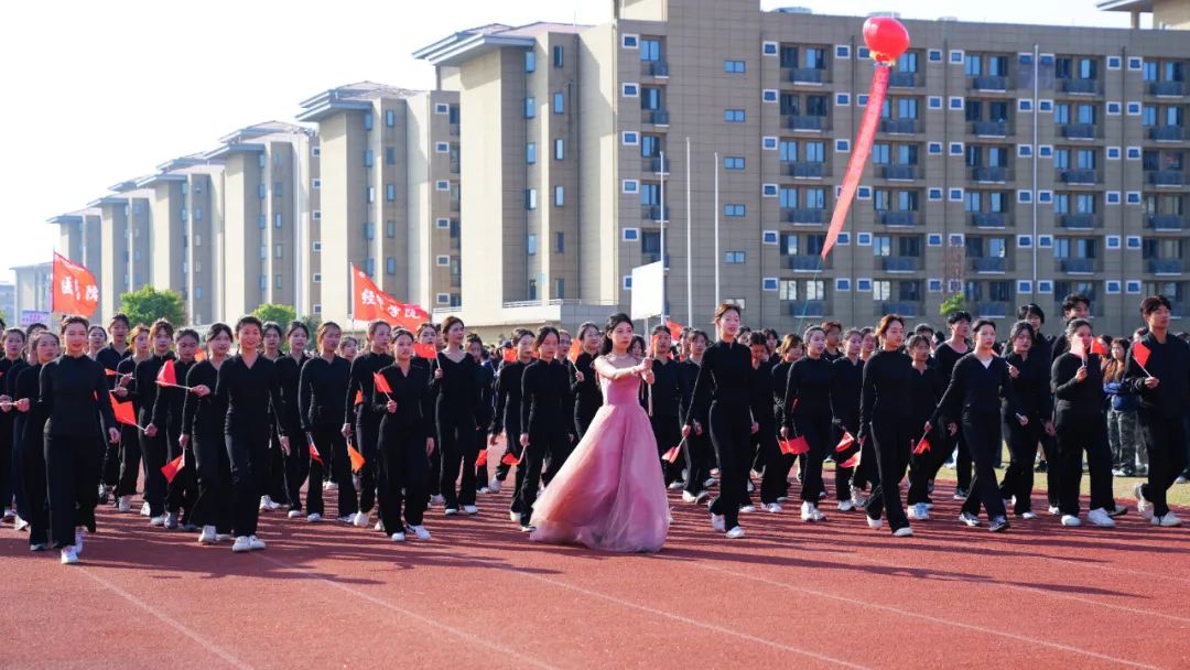 開幕式上,伴隨著激昂奮進(jìn)的旋律,各參賽代表隊(duì)步入會(huì)場(chǎng),解說員依次進(jìn)行介紹,會(huì)場(chǎng)歡騰雀躍。首先入場(chǎng)的是國(guó)旗護(hù)衛(wèi)隊(duì),他們衣著整齊,口號(hào)嘹亮,踏著鏗鏘有力的節(jié)拍,邁著堅(jiān)定的步伐,高擎國(guó)旗、校旗和會(huì)徽走向主席臺(tái)。隨后入場(chǎng)的是各學(xué)院方陣,各方陣隊(duì)用各具特色的方式展現(xiàn)出自己的專業(yè)特點(diǎn),他們以最飽滿的姿態(tài)、最自信的風(fēng)采依次走過主席臺(tái),接受檢閱,為大家?guī)硪粓?chǎng)場(chǎng)注入青春活力與創(chuàng)意想法的精彩表演。