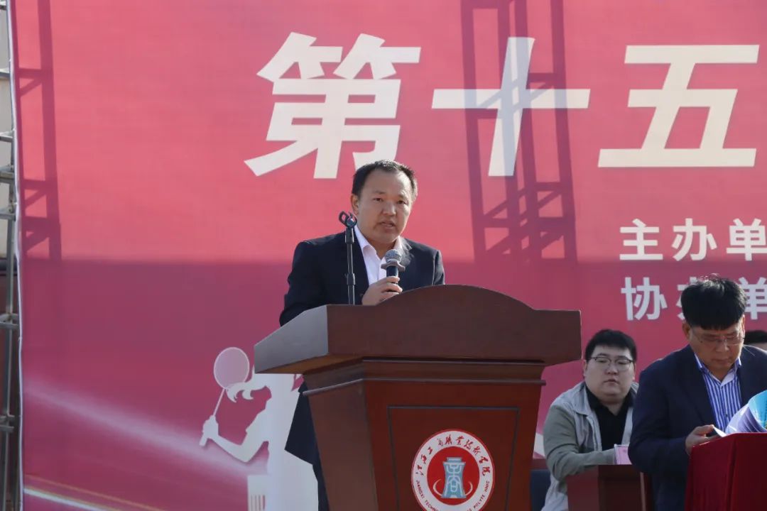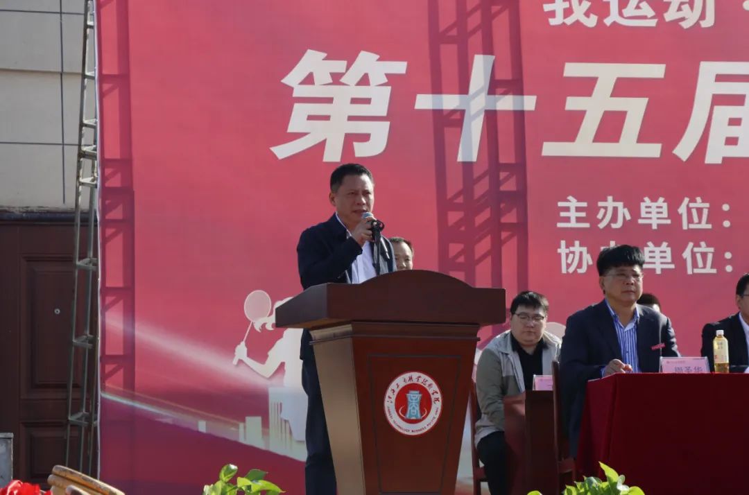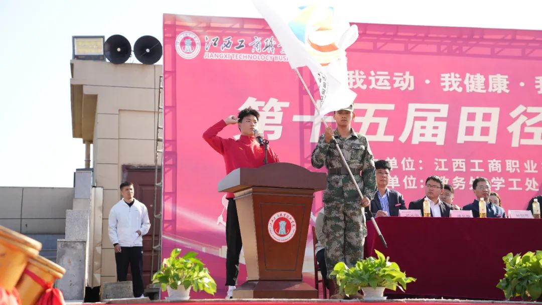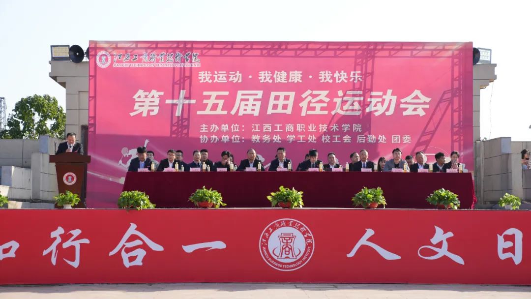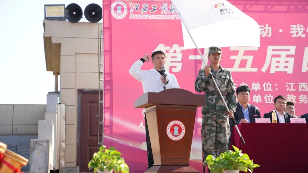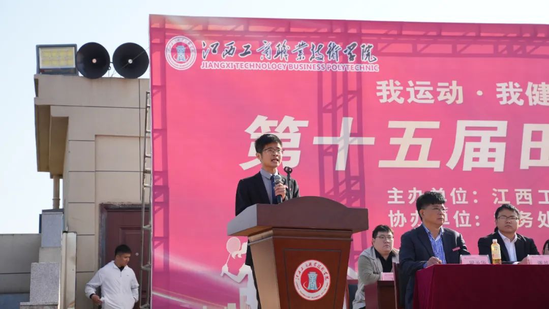 趙頂興在運(yùn)動(dòng)會(huì)開幕式上宣布江西工商職業(yè)技術(shù)學(xué)院第十五屆運(yùn)動(dòng)會(huì)開幕。