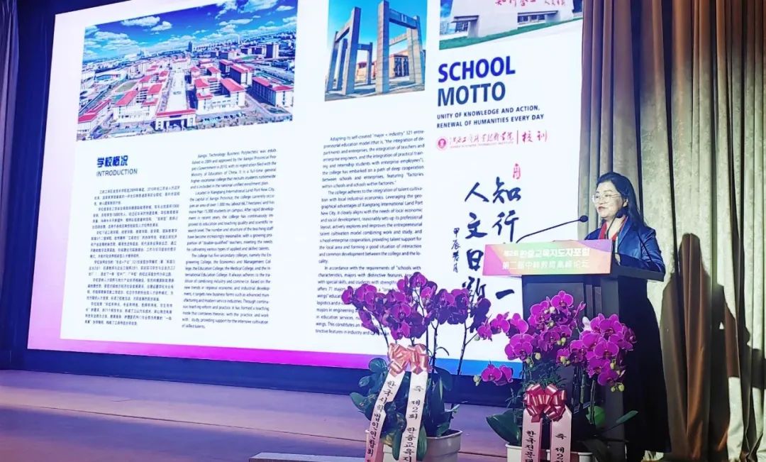 在論壇中,聚仁堂集團副董事長劉雁華作主題報告,詳細分享了我校在教育教學、科研創新、國際交流等方面的情況、經驗與成果。她指出,學校一直堅守開放辦學的理念,積極投身國際交流合作,全力培養具有國際視野的高素質人才。她期待未來能與韓國高校進一步加強合作,攜手發展。劉雁華的報告贏得了與會嘉賓的高度好評。