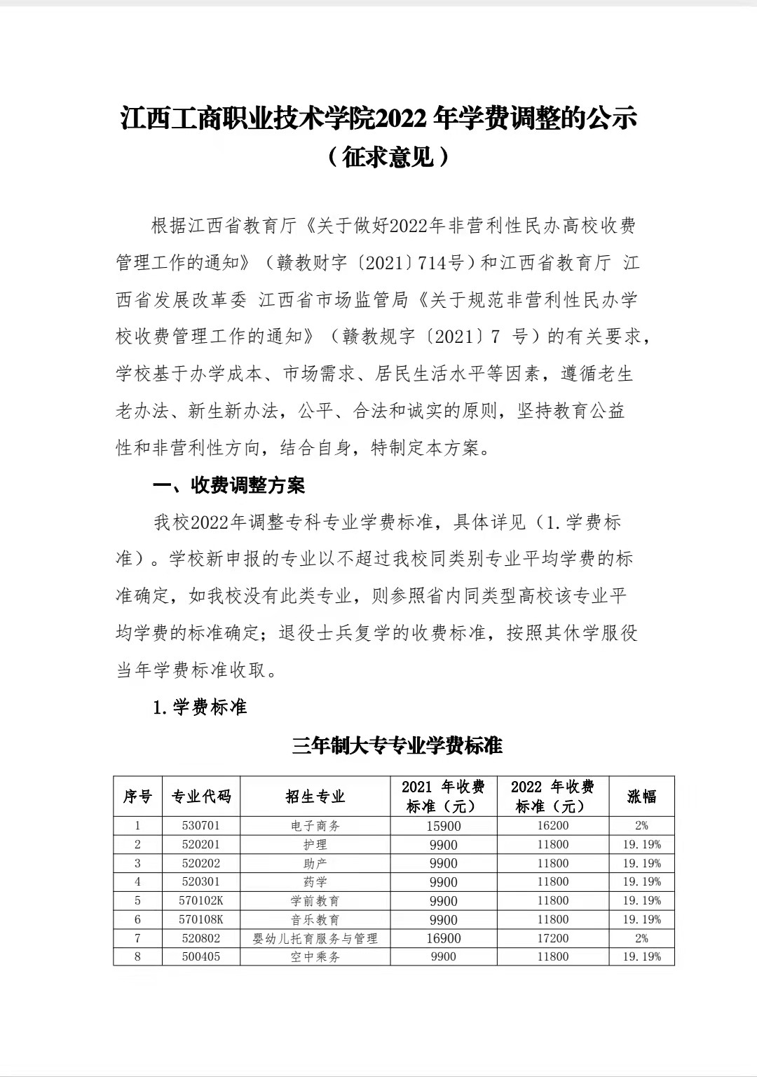 附件:《江西工商職業(yè)技術(shù)學(xué)院2022年學(xué)費(fèi)調(diào)整的公示(征求意見)》