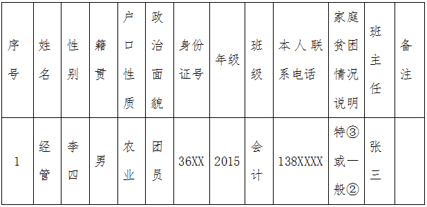 (五)附件二:貧困學生檔案匯總樣表