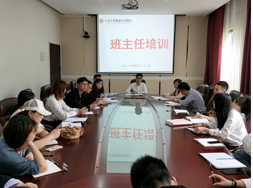 4月23日上午,我校2018-2019學年第二學期學生工作班主任培訓會在第一會議室召開,主要是提升班主任管理水平與部署近期學生管理工作重點。分管校長李盛艷出席會議并講話。學工處、各分院負責人,全體班主任參加會議。